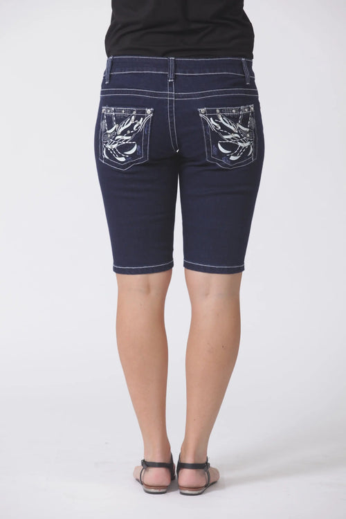 Pair them sweetly with strappy sandals, or go for the gusto with cowboy boots - these Bermuda Denim Bling Shorts are your canvas for endless styling possibilities.