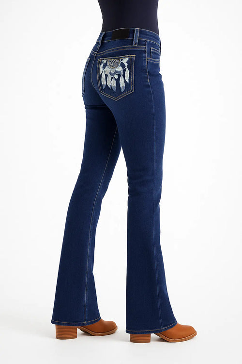 With a high rise no gap waistband that hugs your shape and smooths the hips, Esk Bling Jeans are made to enhance your silhouette. The handcrafted embellishments on the back pockets and bold contrast stitching give them a distinct personality, adding a stylish edge to your denim rotation.